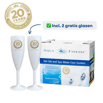 The AquaFinesse hot tub water treatment set contains everything you need for the water treatment of your spa. With only one dose per week, AquaFinesse ensures clean and clear water! AquaFinesse also softens the water in your hot tub by removing the limescale from the hot tub equipment.