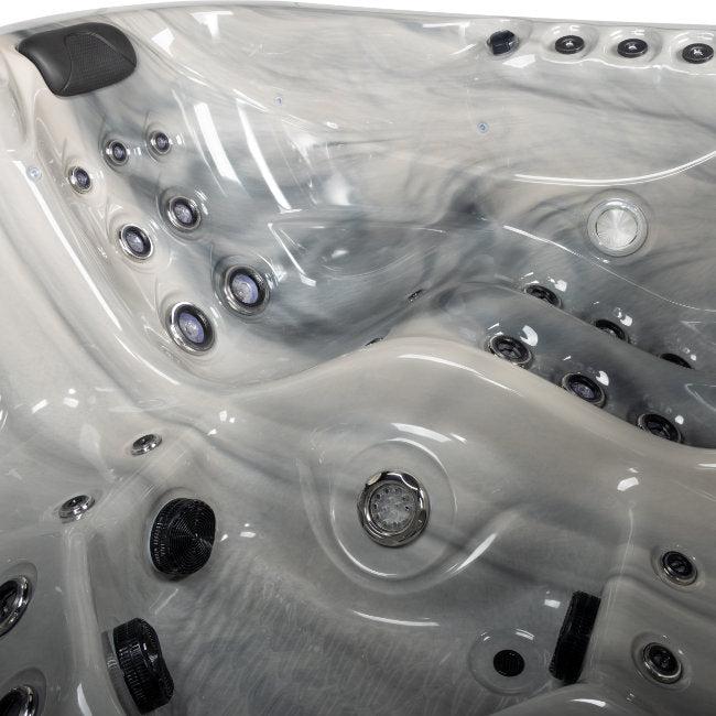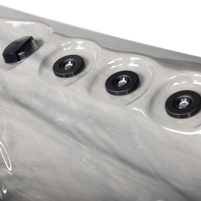 Let the 58 powerful illuminated jets massage and revitalize your body. The two 3hp pumps provide an unparalleled hydrotherapy experience, making every session a moment of pure relaxation. The atmospheric LED lighting, including corner, waterline and underwater lighting, creates a magical ambiance, perfect for evenings of rest and relaxation. The durable shell, made of high-quality Aristech Acrylic and reinforced with six layers, guarantees years of enjoyment.