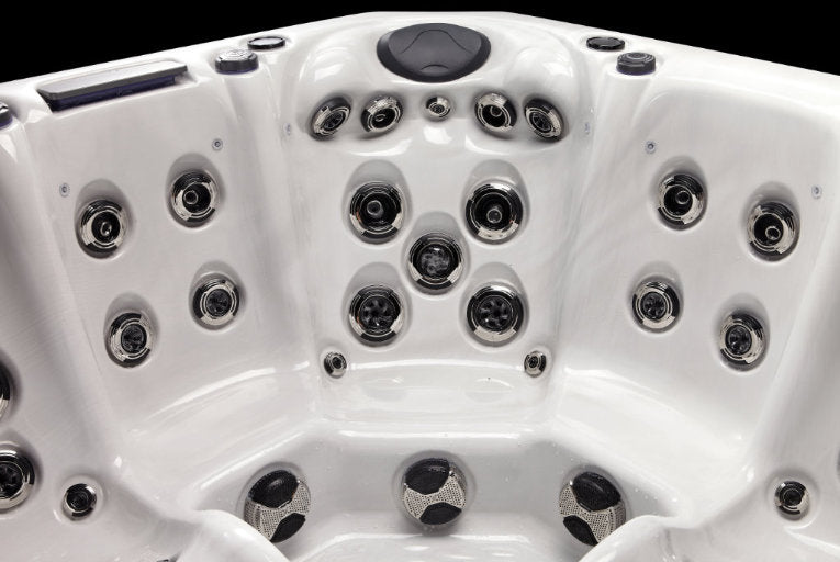 The Marseille is designed for up to five people with two loungers and three chairs. It includes 58 jets, water features and LED lighting. Using 2 x 2HP pumps the jet pressure is incredibly powerful and therefore the hydrotherapy is exceptional.