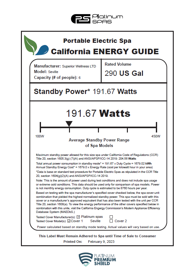 | Standby energy consumption | 1679kWh per year according to California Energy Commission |