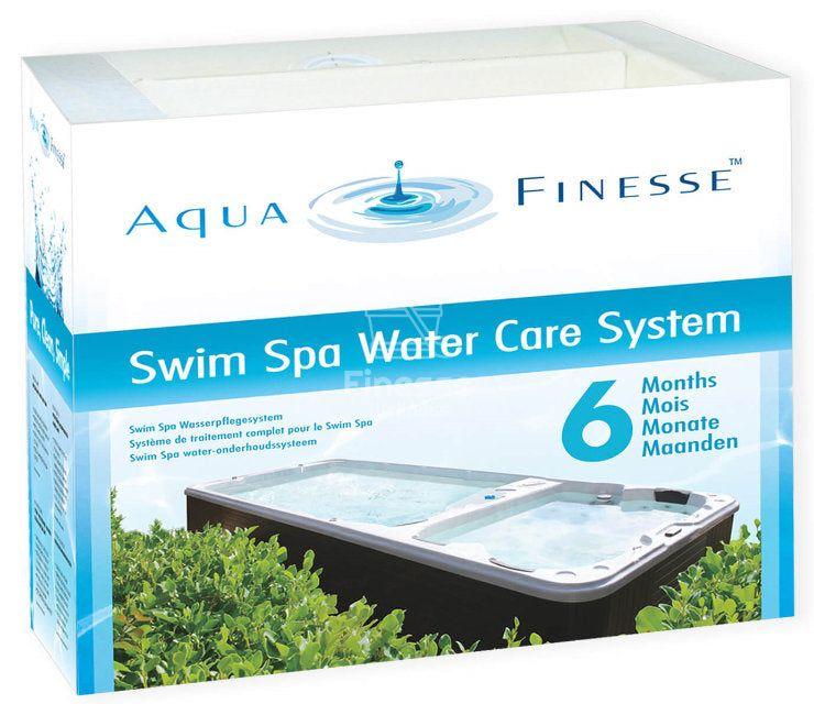 Het AquaFinesse® SWIM SPA pakket is een alles in een oplossing die het totale onderhoud van de swimspa gemakkelijk maakt. De gepatenteerde AquaFinesse® SWIM SPA heeft een unieke en uitgebalanceerde samenstelling die de nadelige effecten van chloor voorkomt, de kwaliteit van het zwemwater verbetert en de beleving van een bad optimaliseert. Uitgebreide tests, door o.a. KEMA Instituut Nederland en Labo Derva België, bevestigen de voordelen.