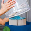 Plaats eenvoudigweg het filter in de Estelle, sluit deze aan op een kraan en draai de kraan open. In een handomdraai heeft u een volledig schoon filter dat weer als nieuw functioneert, voor een absoluut hygiënisch en plezierig spa-ervaring!